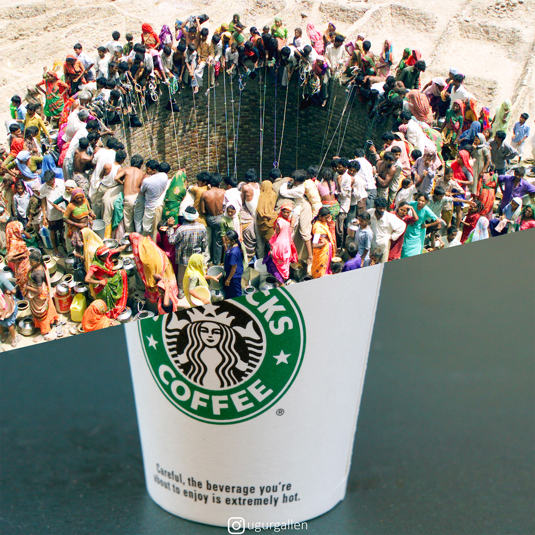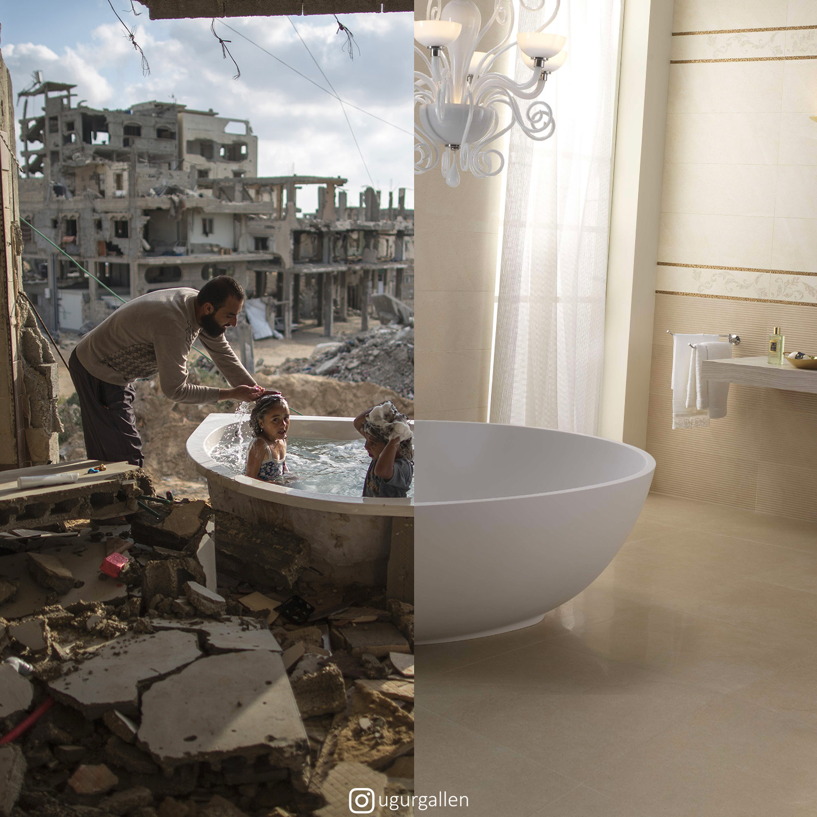 في كلا الصورتين المركبتين استخدم الفنان الاسطنبولي أجزاء متطابقة من صور أخرى لتوضح الفرق بين الرخاء والفقر وليركز على الأمور التي يهتم بها كلا المجتمعين حول العالم تبعاً لمكان معيشتهم!